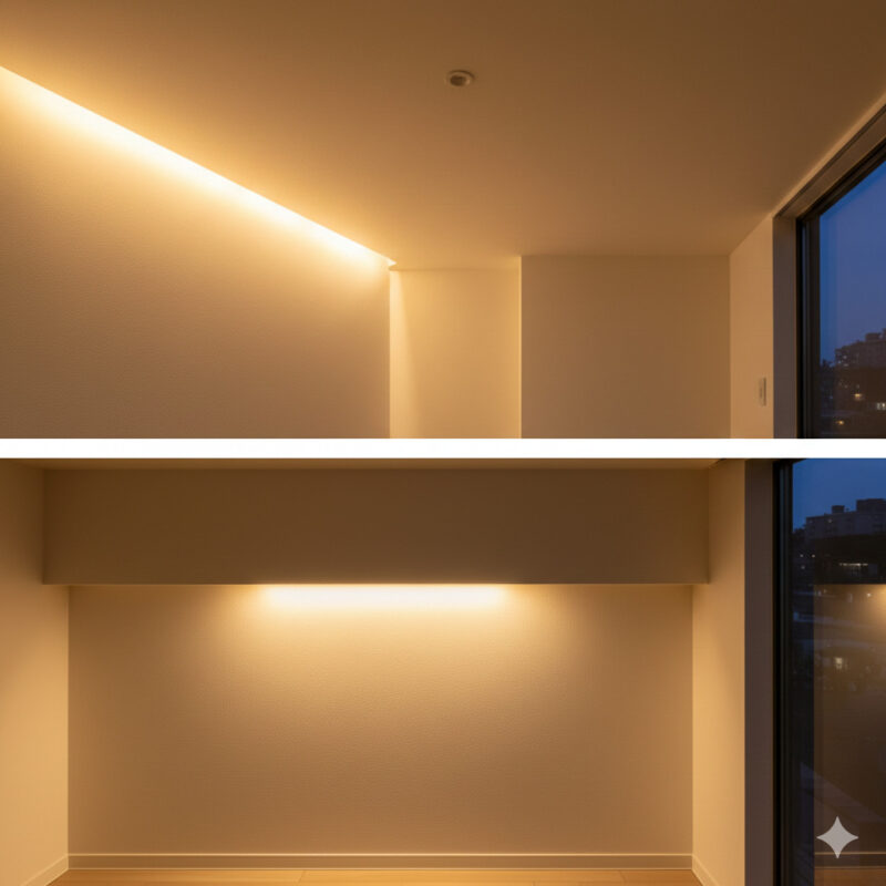 3. ホテルみたいな間接照明「コーブ」と「コーニス」