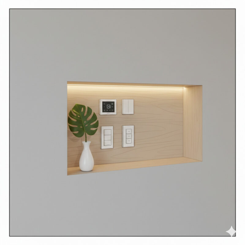 インターホンなどのスイッチ類をまとめたりできます。 「ここにちょっと鍵を置きたい」「お花を飾りたい」という願いを、