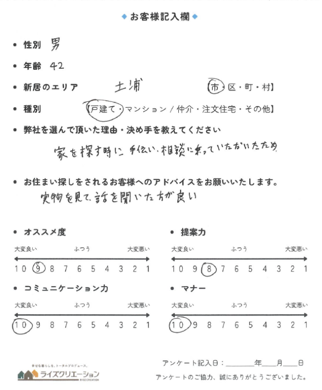 家探しの際に気軽にご相談いただけたとのお言葉を、大変嬉しく拝見いたしました。